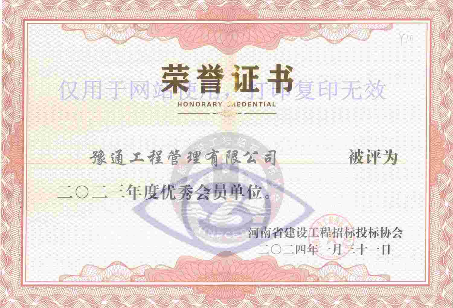 近日,河南省建設(shè)工程招標投標協(xié)會發(fā)布了《河南省建設(shè)工程招標投標協(xié)會關(guān)于2023年度優(yōu)秀會員單位評選結(jié)果的通知》(豫建招協(xié)字〔2024〕6號),豫通工程管理有限公司榮獲“2023年度優(yōu)秀會員單位”稱號。