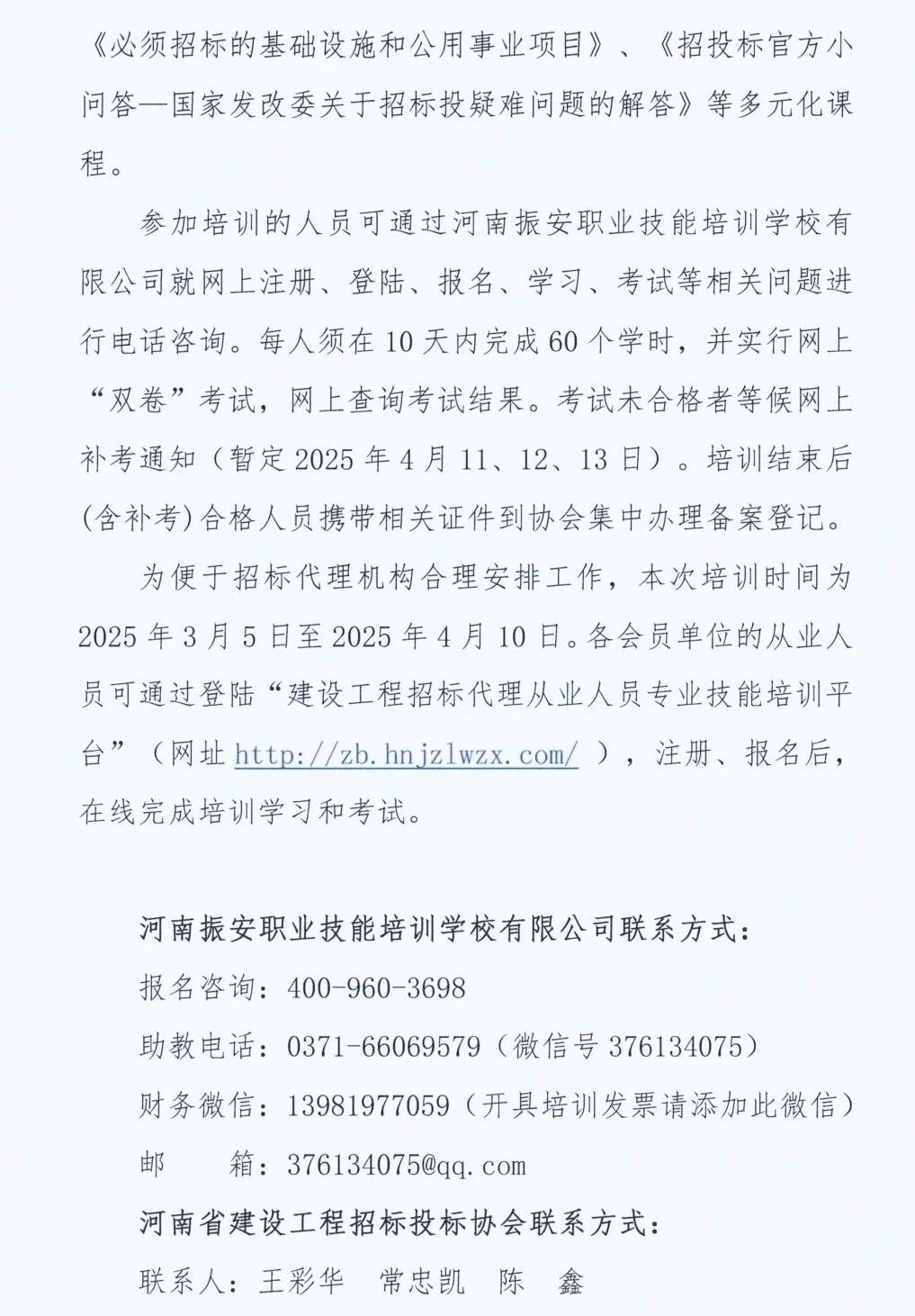 新聞中心 關于開展建設工程領域見證員、取樣員、送樣員線上培訓的通知2025-05-16 2025年勞動節(jié)放假通知2025-04-30 關于開展招標代理從業(yè)人員網上繼續(xù)教育和培訓的通知2025-03-04 祝賀我公司獲評“2024年度建設工程招標投標行業(yè)誠實守信單位”2025-03-03 河南省建設監(jiān)理協(xié)會2025年工作要點2025-03-03 關于開展2025年監(jiān)理從業(yè)人員知識更新繼續(xù)教育的通知2025-02-13 關于常態(tài)化舉辦2025年監(jiān)理從業(yè)人員業(yè)務知識技能培訓的通知2025-02-13 春節(jié)放假通知2025-01-25