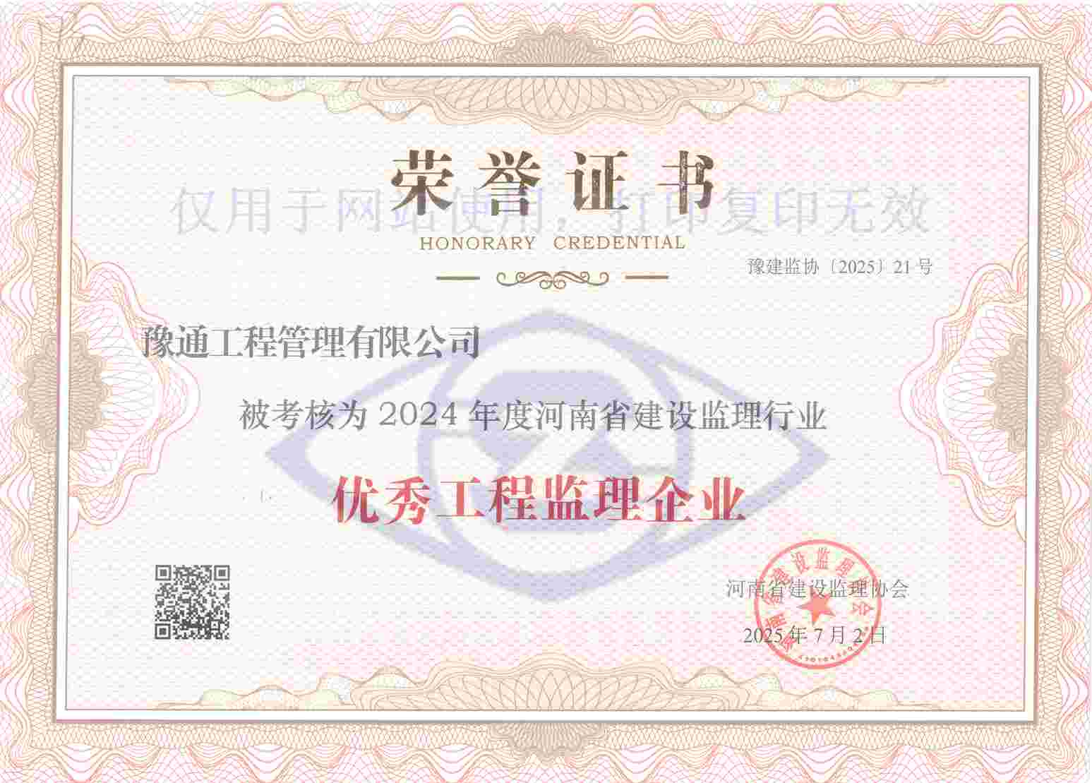 我公司連續(xù)多年榮獲該榮譽,這是協(xié)會及社會各界對公司工作成效的高度肯定,更是對我們未來發(fā)展征程的激勵和鞭策。我們將以此為動力,不斷提升核心能力,持續(xù)提供高品質(zhì)、全方位的技術(shù)服務(wù),傾力監(jiān)造更多精品工程,為河南建設(shè)監(jiān)理行業(yè)高質(zhì)量發(fā)展貢獻更多專業(yè)力量。