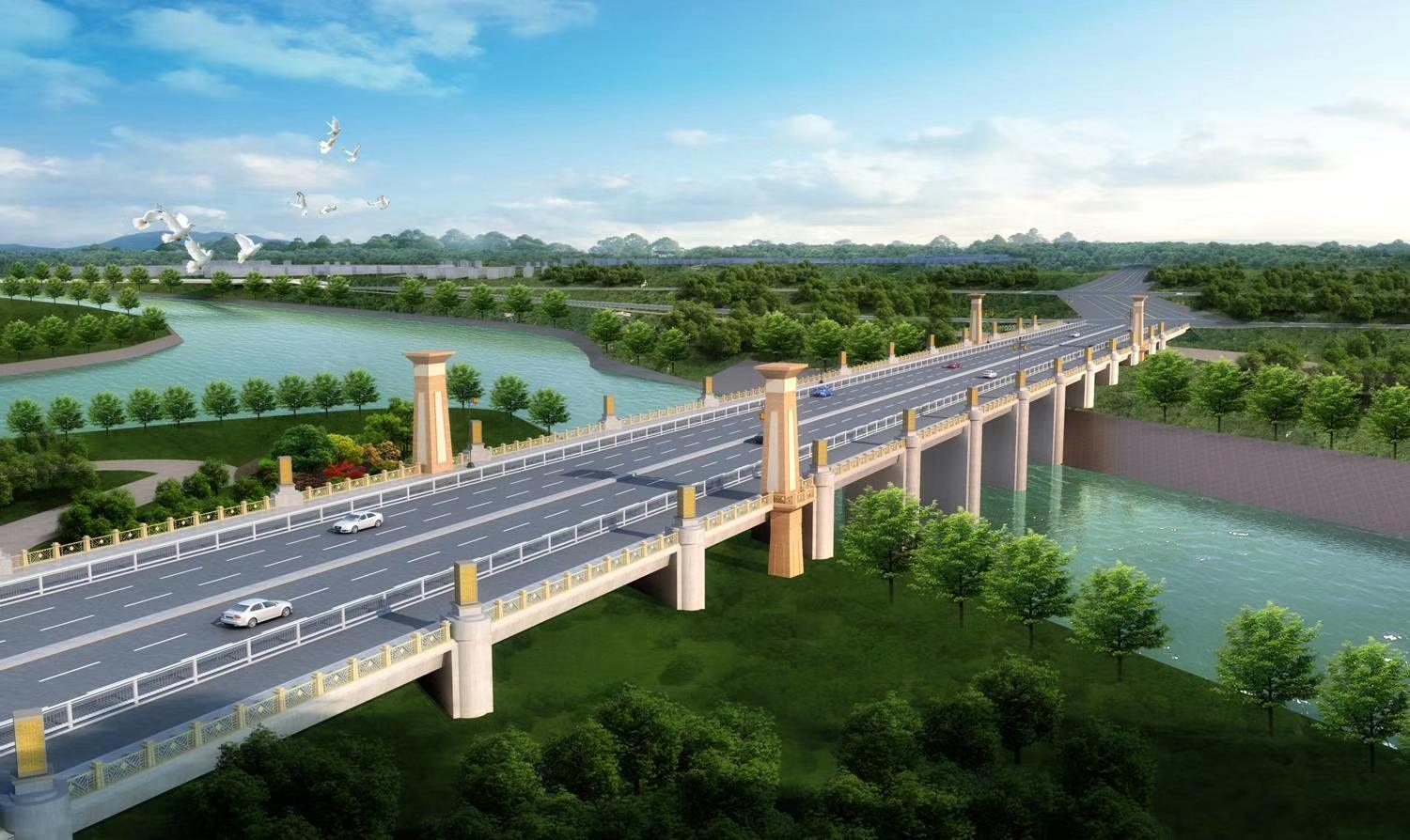 項(xiàng)目位于漯河市西城區(qū)S241南線上,在新開挖河道下游。丹江路規(guī)劃為城市主干道,設(shè)計(jì)時(shí)速50km/h,河道中心線與規(guī)劃道路中心線夾角呈130°。